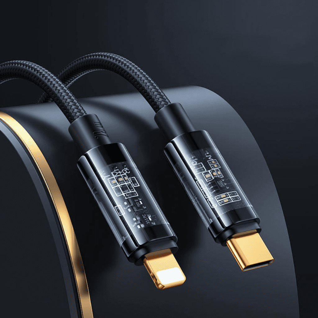 Cáp sạc nhanh iPhone Pisen trong suốt lộ mạch – Type-C to Lightning
