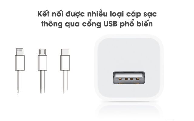 Củ sạc 5W Apple iPhone MD813ZM-A tương thích hầu hết mọi cáp sạc có đầu vào USB phổ biến như: Lightning, Micro USB, Type-C,…nên ngoài việc sạc cho thiết bị iPhone, iPad bạn cũng có thể sạc cho những sản phẩm của thương hiệu khác. Bạn nên chùng chung với dây cáp sạc iPhone chính hãng để đạt độ ổn định tốt nhất.