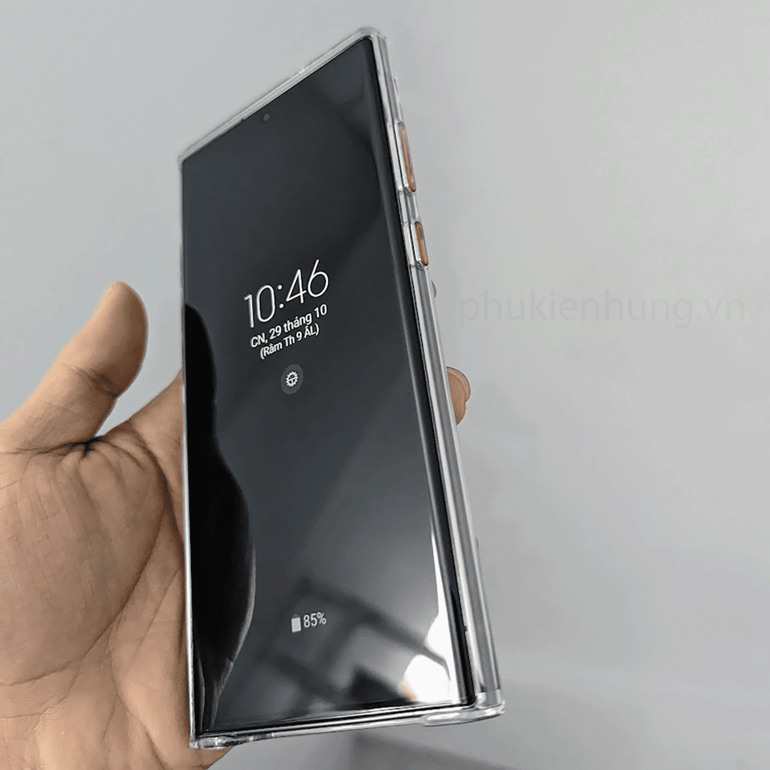 Thiết kế miếng dán màn hình Samsung S23 Ultra ôm trọn phần cong của máy, giúp thao tác vuốt từ cạnh qua không bị cấn tay như miếng dán thông thường, ngoài ra khi khách hàng dán trực tiếp tại Phụ Kiện Hưng sẽ được kiểm tra mẫu ốp lưng sử dụng để thiết kế miếng dán chính xác, vừa khít với ốp nhất để tránh trường hợp cạnh ốp đẩy làm bong miếng dán.